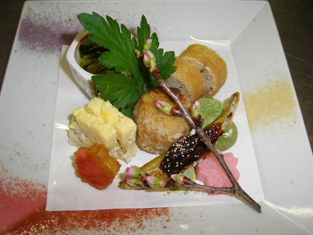 わさび花のおひたし   しのだ巻寿司   六方主芋から揚げ   白魚の玉子とじ