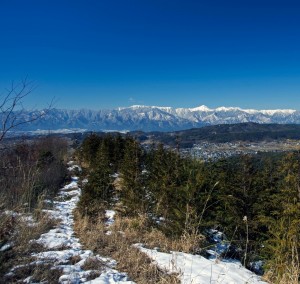 梅の湯から歩いて10分ほどの大音寺山遊歩道から眺めました北アルプスです。