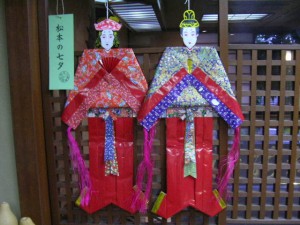 紙で作った織姫と彦星の七夕人形をつるして厄払いを行うために
