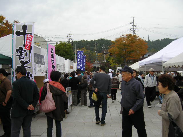 吹奏楽の演奏など4つのイベントは雨のため中止になりましたが、そばブースと物産店は開店しました。