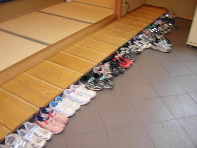 写真は浴場の前に並んだ子どもたちのかわいい靴です。