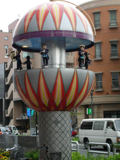 685ee4de.JPG 松本市街に「伊勢町」と言う名の街があります伊勢神明宮があるのでこの名がついたとされておりますが人気ブランドの店や美容室、レストランが並びおしゃれな人達で賑わっております、この街にはエムウィングと言う公民館がありその前に写真のような大きな松本手まりのからくり時計があり時間になりますとてまりが開き人形が踊りだし時を告げます。