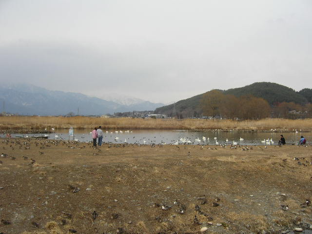 白鳥の北帰行 カテゴリー: 松本平見どころ案内, 社長日記 2010年2月21日 安曇野に冬場飛来しておりました白鳥の北帰行が始まったそうです。 犀川沿いの2か所の場所に飛来しておりました、今は鳥インフルエンザの関係で餌ずけがあまり行われていないようですが、冬の安曇野を走りますと田んぼなどで餌を捕る白鳥を見かけました。 白鳥湖は梅の湯から車で20分ほどのところにあります。 写真は安曇野明科御法田の白鳥です。 梅の湯